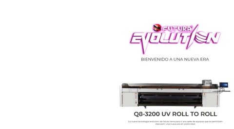 BIENVENIDO A UNA NUEVA ERA Q8-3200 UV ROLL TO ROLL La nueva tecnología evolution de futura tiene para ti una serie de equipos que te permitirán descubrir una nueva era en publicidad.